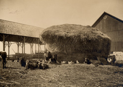 Cow yard with large hay pile -